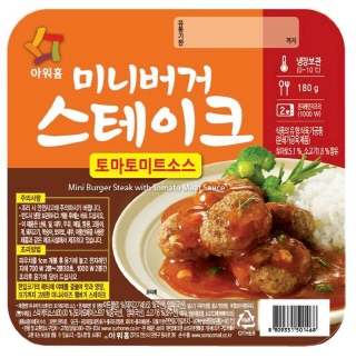 미니버거 스테이크는 한입 크기의 미니사이즈 햄버거 스테이크로 토마토미트 소스와 데리야끼 소스 2종으로 구성됐다.