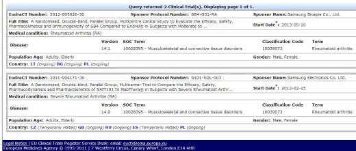 7일 유럽연합(EU)에 따르면 임상시험 공식 등록사이트에 따르면 지난 5월10일 삼성바이오에피스가 엔브렐과 엔브렐시밀러인 'SB4'에 대한 비교임상시험에 돌입했다. 삼성바이오에피스는 무작위배정, 이중맹검 등 방식을 통해 오리지널 의약품과 항체시밀러의 효율성 및 안전성을 검증할 계획이다.