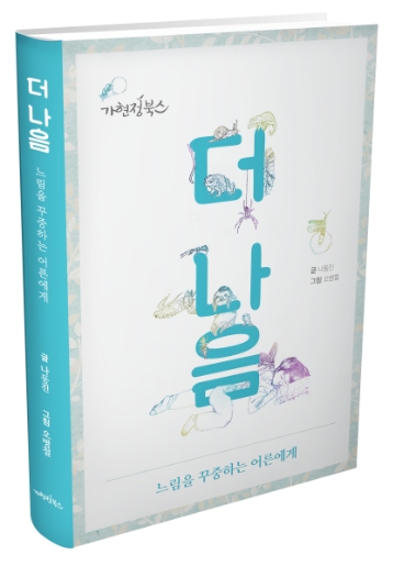세상의 수많은 책 중에 『더 나음 The Slower The Better』이 유난히 반짝이는 이유가 한 가지 더 있습니다. 중학생 아들이 글을 쓰고, 아빠는 바쁜 농사일에도 휴식을 포기하고 매일 저녁 그림을 그렸다고 합니다. 아들을 응원하는 애틋한 부정을 담아서 말이지요. 이 글을 쓴 나동진 작가와 그림을 그린 오병철 작가님은 새롭게 맺어진 부자지간입니다. 중학생 특유의 냉소가 주는 통쾌함과 서정적인 그림이 주는 포근함을 동시에 경험할 수 있는 책이기에 추천합니다.