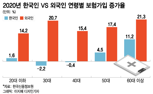 보험업계에 따르면 국내 거주하는 중국인에 특정한 한국 민영보험 가입 현황 데이터는 아직 없다. 다만 지난해 보험연구원의 연구 자료에서 중국인의 가입 열기를 유추할 수 있다. 이 연구에 따르면 2014~2020년 국내 '등록외국인'의 보험 가입 증가율은 한국인보다 더 높았다. '등록외국인'은 국내 90일 이상 체류해 외국인등록증을 발급받은 사람으로, 국내에서 보험에 가입할 수 있는 대상이다.