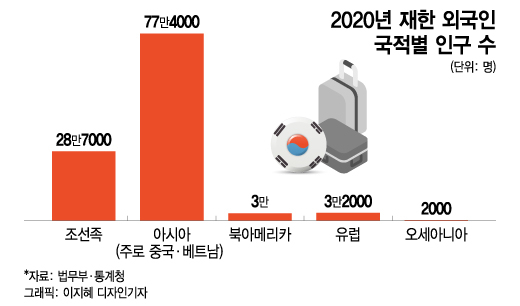 특히 등록외국인 가운데 30대(20.7% 증가)와 60대 이상(21.3% 증가)의 보험 가입 증가율이 가장 가파르게 상승했다. 같은 연령대의 30 한국인은 오히려 2.2% 줄고, 60대는 11.2%만 증가한 것과도 차이를 보인다. 2020년 국내 등록외국인은 114만6000명으로, 그들 중 대다수가 조선족(28만7000명)과 아시아인(77만4000명)이었다. 여기서 아시아인 대다수는 한족 등 중국인과 베트남인이다. 한마디로 국내 90일 이상 체류하는 외국인 가운데 조선족을 포함한 중국인이 가장 많다는 것이다. 이들의 보험금 청구 항목은 질병 진단(26.8%), 질병 통원비 실손(18.9%), 질병 입원비 실손(16.8%), 질병 수술(6.8%), 상해사망(4%) 순으로 많았다.