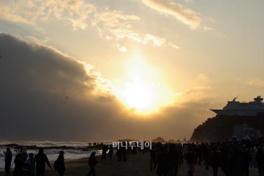 서울에서 떠난 기차가 전국 제일의 해돋이 명소인 정동진역에 도착한 시간은 새벽 5시10분쯤. 겨울바다는 사납게 몸을 뒤척였다. 희뿌연 하늘의 한편에선 조금씩 균열이 생기기 시작했다. 바다를 붉게 물들이며 태양이 올라오기 시작한다. 사람들의 얼굴에도 붉은 물감이 든다.