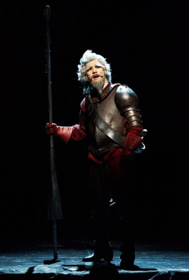 돈을 뜯어내기 위해 관능적인 춤을 추며 자신을 유혹하는 여인에게 고개를 갸우뚱, 눈을 껌벅거리며 "아가씨, 뭘 허시오?"라고 할 때는 영락없는 정신 나간 70대 노인이었다. 거울의 기사가 현실을 직시하라며 거울 속 돈키호테의 늙고 초라한 모습을 보여줄 때 쉰 목소리를 내며 울부짖는 장면은 고뇌하는 인간의 고통과 번민이 느껴져 객석의 가슴마저 찌릿하게 했다.