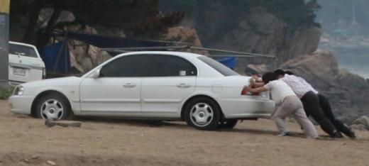 일단 마찰력이 어느 정도 확보되면 급하게 가속하지 말고 부드럽게 액셀을 조작해야 합니다. 동승자 혹은 주변 사람들이 뒤에서 밀어주는 것도 필요합니다. 마찰력과 단계적인 가속을 통해 백사장을 빠져나오는 것이 정석이라 할 수 있습니다.