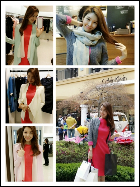 저는 이번에 클래식한 원피스를 사러 아웃렛을 다녀왔습니다. 제가 한창 책을 쓰고 있는데 책에 실을 스튜디오 사진 촬영을 앞두고 있었거든요. 그래서 편안한 옷 대신 색감이 뚜렷하고 몸매를 잘 살려주는 원피스를 위주로 쇼핑을 했습니다.