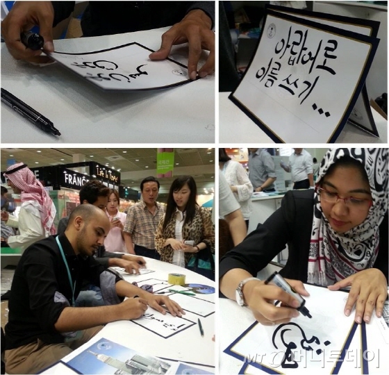 서울 코엑스 '2014 서울국제도서전' 사우디아라비아 부스, '아랍어로 이름쓰기'