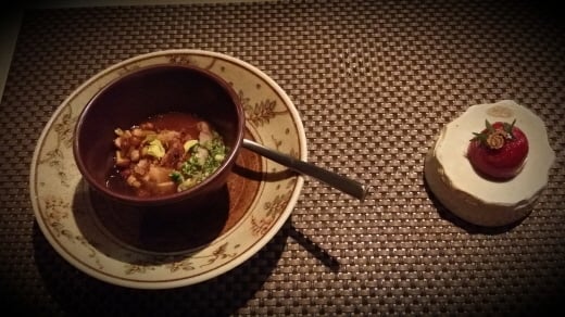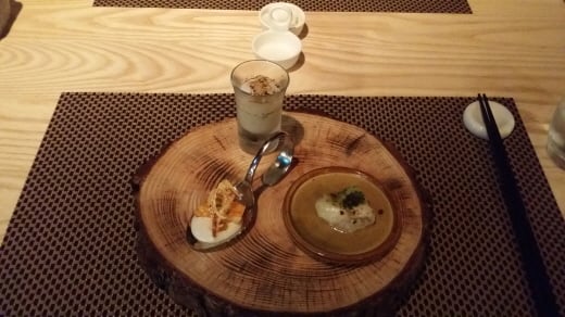 디저트 또한 여성들의 설렘을 자극할 만합니다. 바로 간장, 고추장, 된장을 이용한 장트리오 크렘블레와 위스키 카푸치노, 바닐라 아이스크림의 조화가 어우러진 것이었어요. 입안에서 절묘하게 조화된 맛을 느끼면서 정말 행복했습니다.