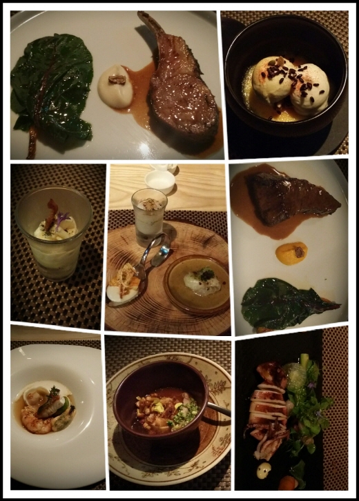 디너 코스를 맛봤는데, 굉장히 다채롭게 구성되어 있어요. 오늘의 한입 요리부터 감탄을 자아냅니다. 삼치, 문어, 검은콩 가르파쵸. 굉장히 독특한 재료와 소스로 어우러져, 숨겨진 맛을 찾아내는 재미도 쏠쏠하네요. 허브 샐러드와 총알 오징어, 바닐라 만두 등 여느 곳에서 쉽게 맛보기 어려운 코스요리에 감탄이 나옵니다.