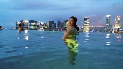 스카이파크의 수영장은 꼭대기에 있어 그 자체만으로도 멋있고요. 그곳에서 바라보는 싱가포르의 경치와 야경도 특별함 그 자체랍니다.