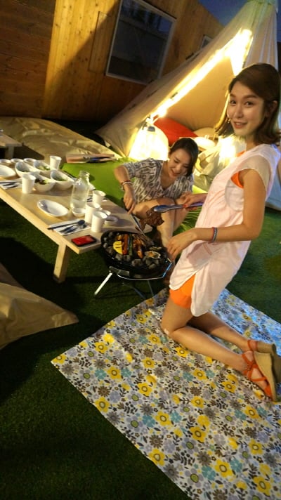 네 명인 제 일행은 바비큐 B 세트, 칵테일 1잔, 맥주 6병, 빠에야 등을 주문했는데 가격은 약 17만원 정도였습니다. 든든한 식사를 즐기지는 못하겠지만, 캠핑의 분위기와 가벼운 일탈을 즐길 수 있는 장소쯤으로 생각하면 될 겁니다.