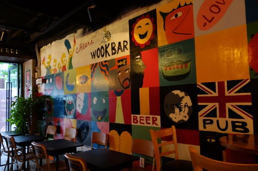 특히 욱바의 한쪽 벽면을 멋지게 장식하는 일러스트 벽화는 유명한 예술가의 피를 이어받은 지인의 작품이라고 하는데요, 직접 벽에 그려넣은 예술 작품은 어느 선술집과도 비교할 수 없는 욱바만의 매력 포인트입니다.