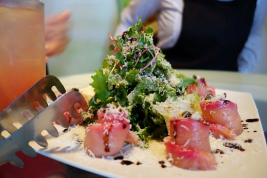 특히 가장 인기가 좋다는 시그니쳐 메뉴는 충분히 스트레스를 날려줄 만 했습니다. 연어샐러드는 꽃처럼 비트로 색을 입힌 데코레이션으로 시각마저 만족시켜줬습니다.