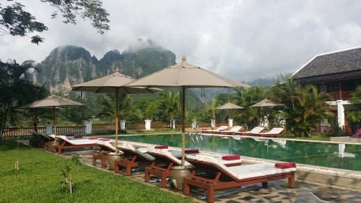 방비엥에서는 5km가량 떨어져 있는데요. 한국이었으면 자동차로 5분이면 도착할 곳이지만, 오토바이 택시(Tuk-Tuk)나 자전거를 이용해야 하기 때문에 20~30분은 족히 걸립니다. 하지만 가는 길마저도 아름다워서 전혀 지루하지 않을 겁니다.