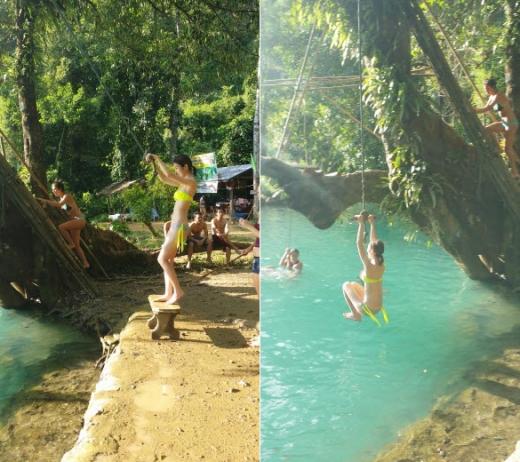 꽃보다 청춘에서는 버기카(75US$)로 진흙탕 물을 뒤집어쓰고도 신나게 달리는 장면이 나왔는데요, 가격이 부담스럽다면 절반 가격의 ATV를 이용하는 것도 추천합니다. 작열하는 태양을 받으며 ATV를 타고 쌩쌩 달렸더니, 시원한 블루라군으로 바로 점프하고 싶더군요. 묘기를 부리며 다이빙을 하거나, 물 위 그네를 타고 놀 수 있었습니다.