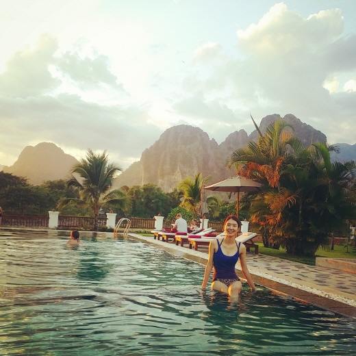 방비엥의 자연은 말로 표현할 수 없습니다. 언제 어디서든 어느 각도에서 사진을 찍더라도 예술작품이 탄생하는 곳이죠. 한적한 강 풍경과 카르스트 지형의 수려한 경관은 한 폭의 그림과도 같습니다.
