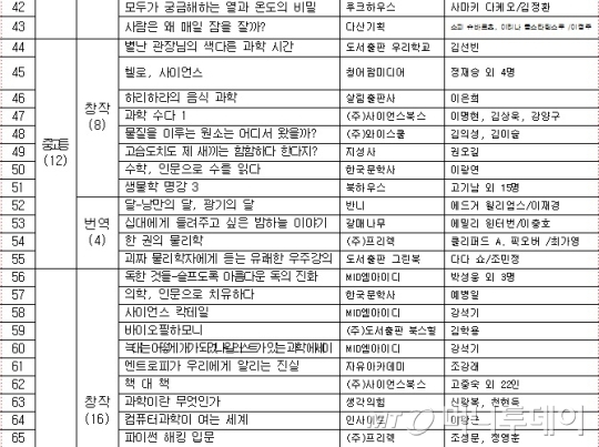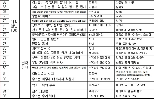 학생 보다 대학·일반인 대상 도서 많아…미래부, '2015년도 우수과학도서' 85종 선정