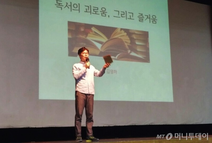 18일 오후 2시 서울 노원구민회관 대강당에서 열린 '제 5회 노원교양대학'에는 김영하가 말하는 '독서의 괴로움과 즐거움'을 듣기 위해 모인 시민들로 가득했다. 최근 독서의 필요성을 느끼고 읽기 시작한 책이 지루해서 고민인 여대생부터 문학 동아리 회원들, 자신이 가르치는 책의 내용에 학생들이 자아 해체를 겪는 것 같아 고민이라는 백발의 교수까지. '독서'라는 주제로 각자의 고민을 지닌 많은 시민들이 자리를 채웠다.