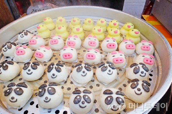 한쪽에는 이제 대만의 상징이 돼 버린 야시장이 넓게 펼쳐져 있었다. 타피오카 펄을 넣어 만든 밀크티, 대왕오징어 튀김, 설탕 코팅을 한 딸기 등 다양한 먹거리가 관람객의 발길을 붙잡았다. 한국인들이 잘 견디지 못하는 취두부와 고수 향도 곳곳에서 진하게 풍겨 나왔다.
