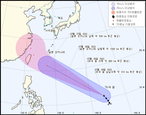올해 첫 태풍 '네파탁'(NEPARTAK)이 지난 3일 괌 남쪽에서 발생했다. 7월에 첫 태풍이 발생한 건 18년 만이다. 이 태풍이 국내에도 영향을 미칠지 주목되고 있다.