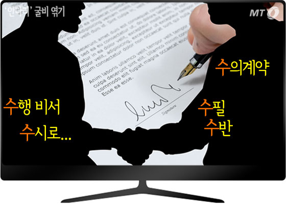 우선 '수행 비서'는 보통 높은 사람을 따라다니며 일을 하는 비서를 말하는데요. 일반 사무 비서와 달리 늘 곁에 있다는 점이 강조됐습니다. 학교에서 붓 가는 대로 쓰는 글이라고 배웠던 '수필'은 글자 뜻 자체가 붓을 따라서, 곧 '붓 가는 대로'입니다. 물론 아무렇게나 글을 써도 된다는 얘기는 아니겠지요.