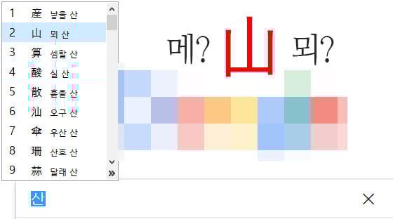 인터넷을 하다가 컴퓨터 자판으로 '山'을 만들기 위해 '산'을 치고 한자 키를 눌렀습니다. 두 번째에 '山 뫼 산'이 나오네요. 어색함 없이 2번을 눌렀습니다. 그런데 최근 '메 산'이라고 쓰는 게 맞다는 글을 우연히 봤습니다. 수십 년간 의심 없이 써온 것이 틀린 게 될 상황인데요.