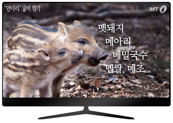 사진에 보이는 동물, 산에 사는 돼지는 '멧돼지(메+돼지)'라고 하지요. 물론 산돼지라는 말도 사전에 있습니다만, 다른 산짐승과 달리 이 경우에는 '메-'가 더 익숙합니다. 산꼭대기에서 소리를 칠 때 소리가 울려 되돌아 오는 것은 '메아리'라고 합니다. '산울림'도 같은 말이지요.