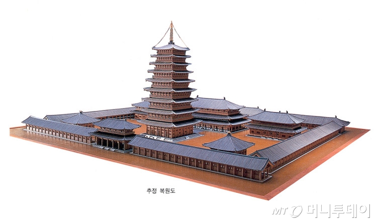 신라 선덕여왕 643년에 지어졌다가 13세기 몽고 침입으로 불에 타 절터와 탑 터만 남은 황룡사지 9층 목탑은 가장 예민하고 신중하게 접근해야 할 고난도 복원 작업으로 꼽힌다.