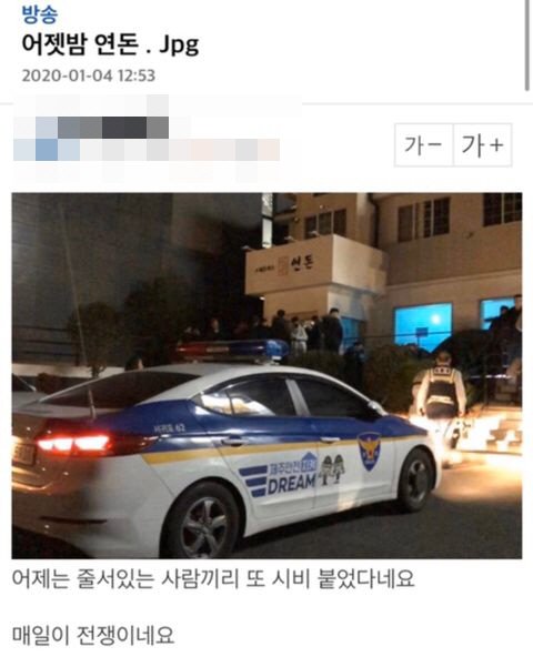 지난 4일 '어젯밤 연돈'이라는 제목의 글이 온라인 커뮤니티에 올라왔다. 게시글에는 경찰차가 출동한 듯한 모습의 사진과 함께 '어제 줄 서있는 사람들끼리 또 시비가 붙었다네요. 매일이 전쟁이네요'라는 내용이 적혀 있어 크게 논란이 됐다.