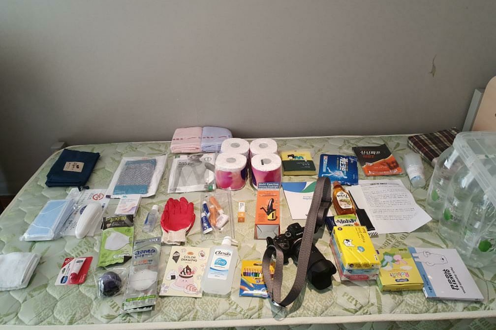 꼭 실용적인 물품만 있는 것도 아니다. 14일간 의료진을 제외한 외부와의 접촉이 완전히 차단되는 가운데 격리 생활의 무료함을 달랠 책도 지급됐다. 또 창의적인 활동을 위한 색연필 세트 등도 담겼다.