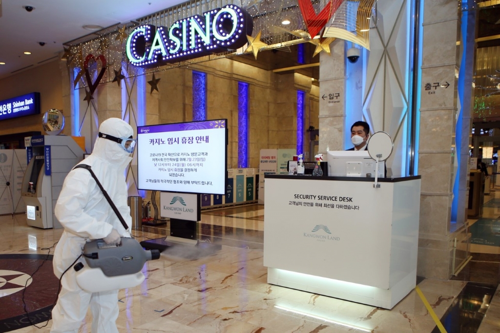 24일 강원랜드는 전날(23일) 코로나19 관련 정부 위기경보가 '심각' 단계로 격상함에 따라 문태곤 강원랜드 사장 주재로 비상대책회의를 열고 오는 26일 오전 6시까지 임시 휴장하기로 결정했다고 밝혔다.