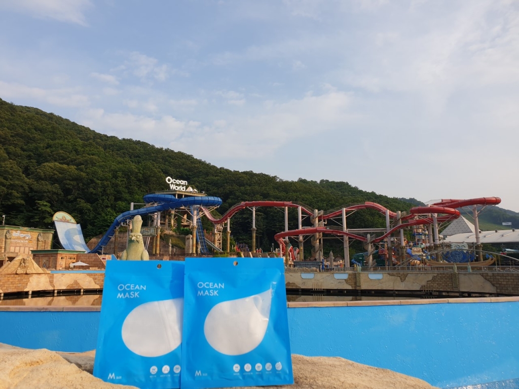 무엇보다 워터파크 특성 상 마스크를 쓰고 벗거나 휴대가 불편하고 물에 젖으면 마스크 성능도 저하돼 '안전 물놀이'에 대한 우려가 크다. 이에 국내 대표 워터파크인 오션월드는 워터파크 나들이객들이 안심하고 놀 수 있는 물놀이용 마스크를 개발했다.