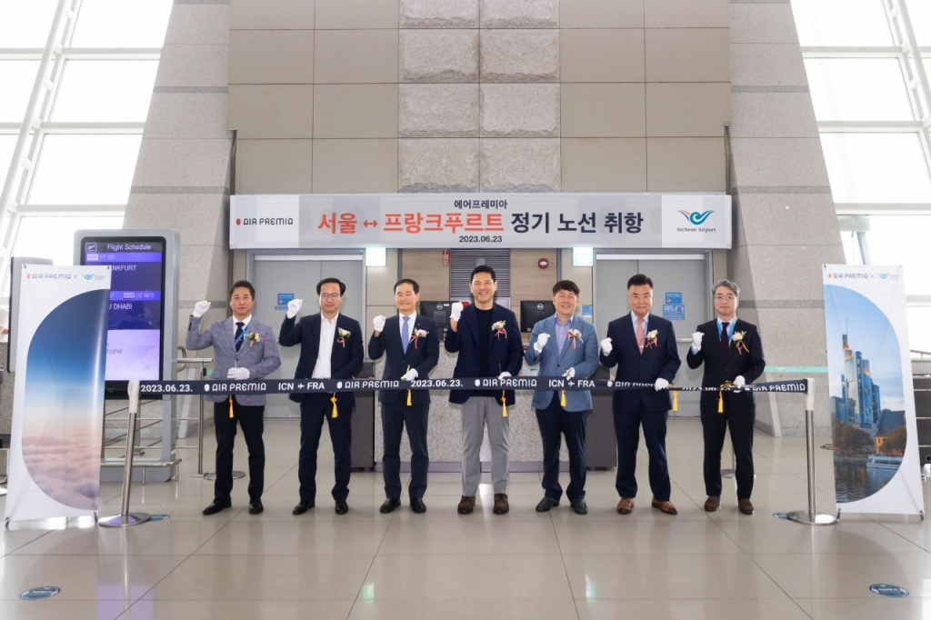 국내 최초 하이브리드 항공사 에어프레미아(Air Premia)가 6월 23일(금) 인천국제공항 제1여객터미널에서 첫 유럽 정기노선 취항을 기념하는 취항식을 열며, 인천~프랑크푸르트 노선 신규 취항했다고 26일 밝혔다.