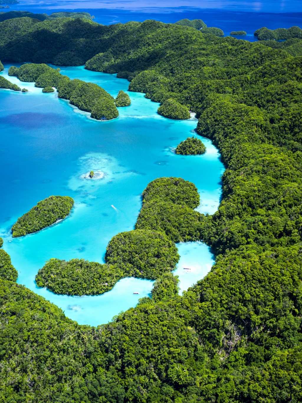 유네스코 세계자연유산으로 등재된 '락 아일랜드'는 팔라우와 대표적인 관광 명소다. 화산 작용에 의해 생긴 석회암 무인도 445개가 흩어져 상공에서 바라보면 장관을 이룬다. '바다의 정원'이라는 팔라우의 별칭도 락 아일랜드의 환상적인 풍경에서 유래했다.