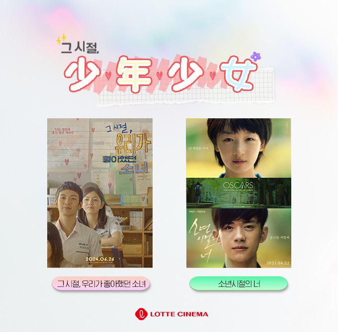롯데시네마가 오는 26일부터 7월 2일까지 '그 시절, 少年少女(소년소녀) – 청춘 로맨스 영화' 기획전을 진행한다고 25알 밝혔다.