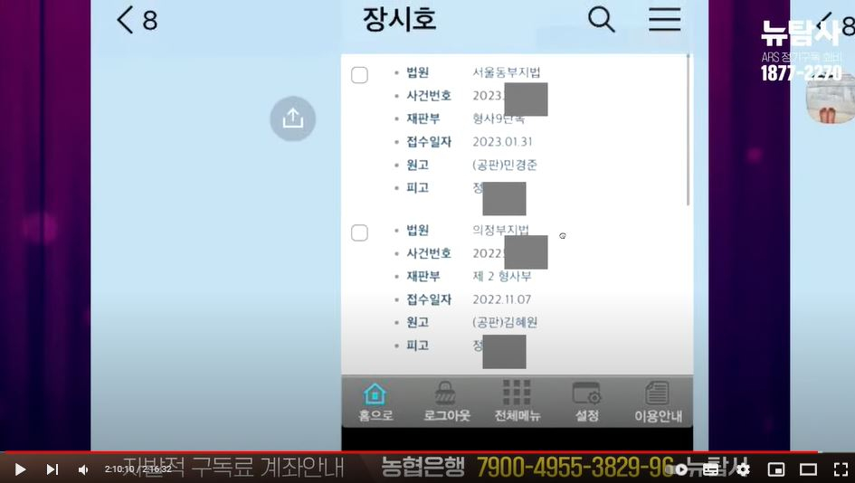 뉴탐사가 올린 영상 내용에 따르면 정다은이 장씨에게 청탁을 위해 보낸 사건목록 중 '서울동부지법 형사9단독'에서 재판 중이었던 건은 자신과 동성연인 관계였던 한서희 관련 위증 혐의 사건이다.