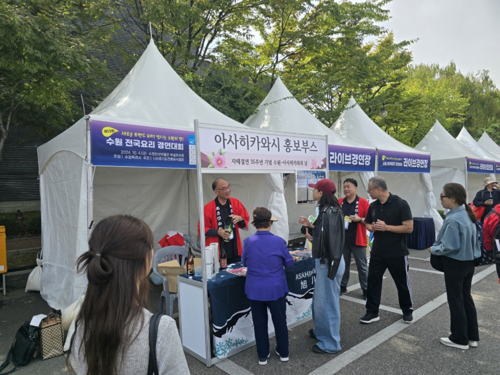 축제 현장 한 켠엔 수원과 자매도시인 일본 홋카이도의 아사히카와 부시장도 참석해 지역 사케를 직접 따르며 소개하는 등 국제 축제의 분위기를 조성했다.