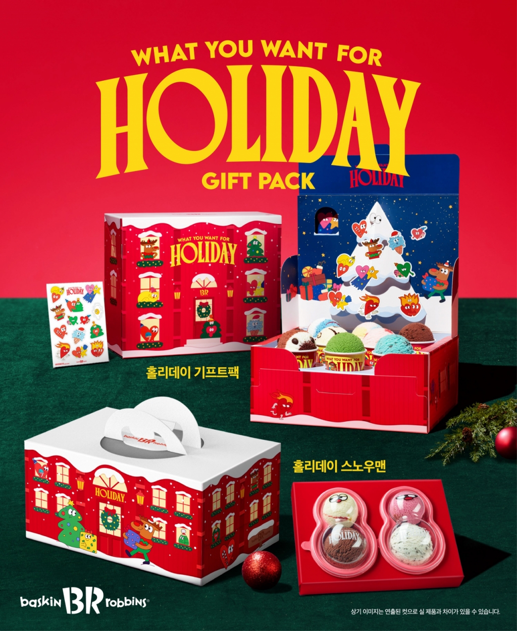 '홀리데이 기프트팩'은 8가지 맛의 싱글 레귤러 사이즈 아이스크림을 담을 수 있는 패키지로, 상자를 열면 화이트 팝업 트리가 등장하고 장식용 스티커가 동봉돼 나만의 트리를 완성할 수 있다. 패키지 내부에 인쇄된 QR코드를 통해 모델 변우석이 보내는 크리스마스 메시지도 확인할 수 있다.