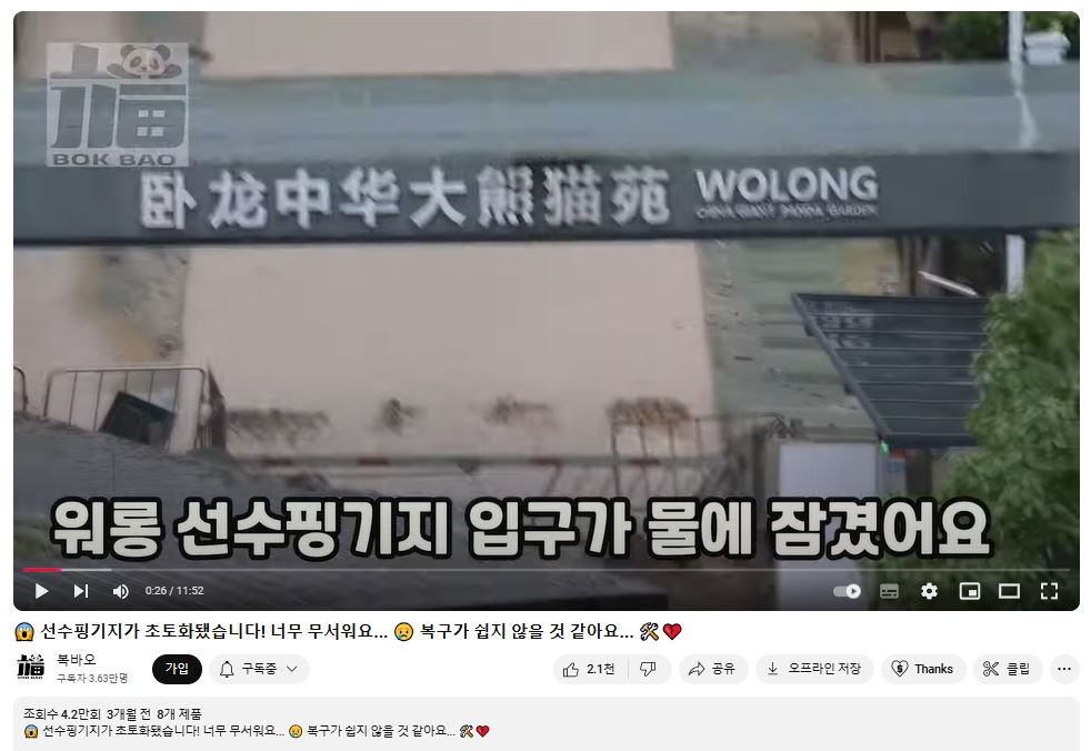 26일 머니투데이 취재에 따르면 선수핑기지 측은 지난 4일 웨이보(중국판 엑스)를 통해 푸바오에게서 이상징후가 발견됐다면서 면밀하게 관찰 중이라고 밝힌 바 있다.