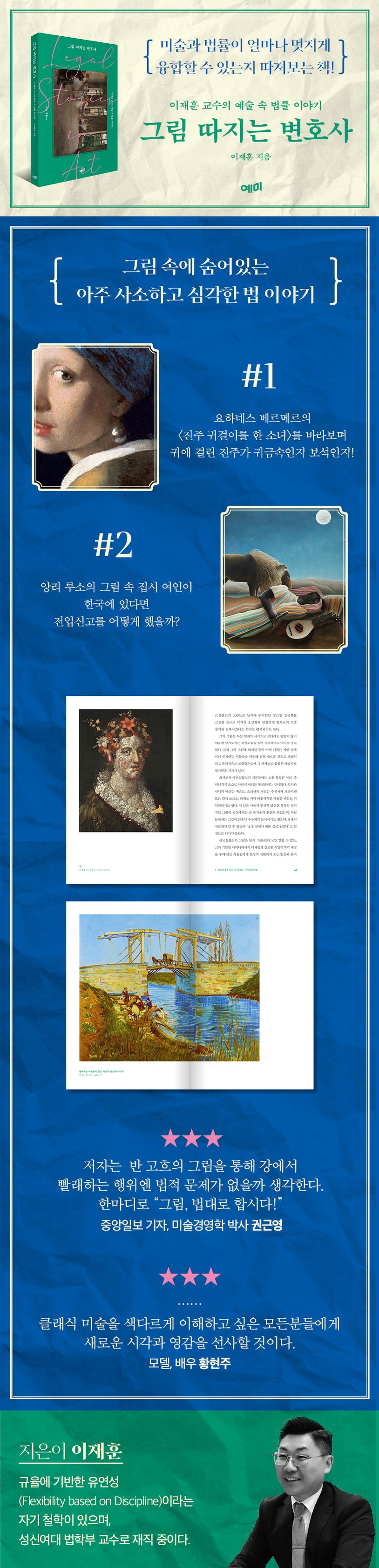 유명한 그림 속에서 엿보는 아주 사소한 세상 만물에 관한 법 이야기부터, 심각한 사건사고가 얽힌 예술 속 이야기 등 다양한 주제를 만나볼 수 있다.