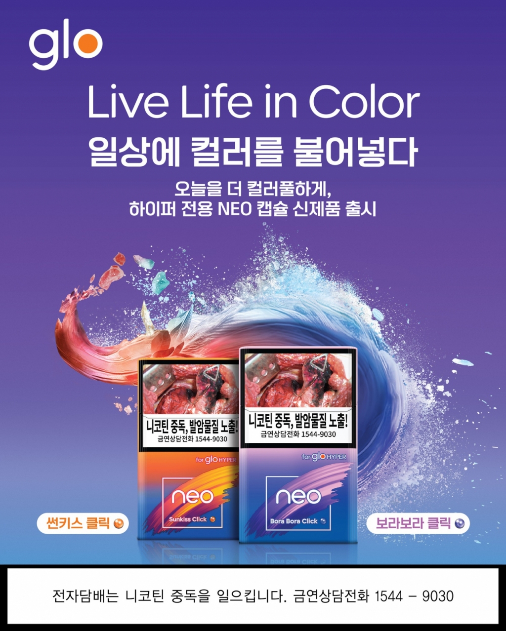 이번 캡슐형 네오 2종은 2025년 글로의 브랜드 캠페인 '리브 라이프 인 컬러(Live Life in Color)'를 알리는 첫 제품으로, 캡슐을 터트리면 새로운 풍미가 더해져 상쾌하고 청량한 느낌을 즐길 수 있다.