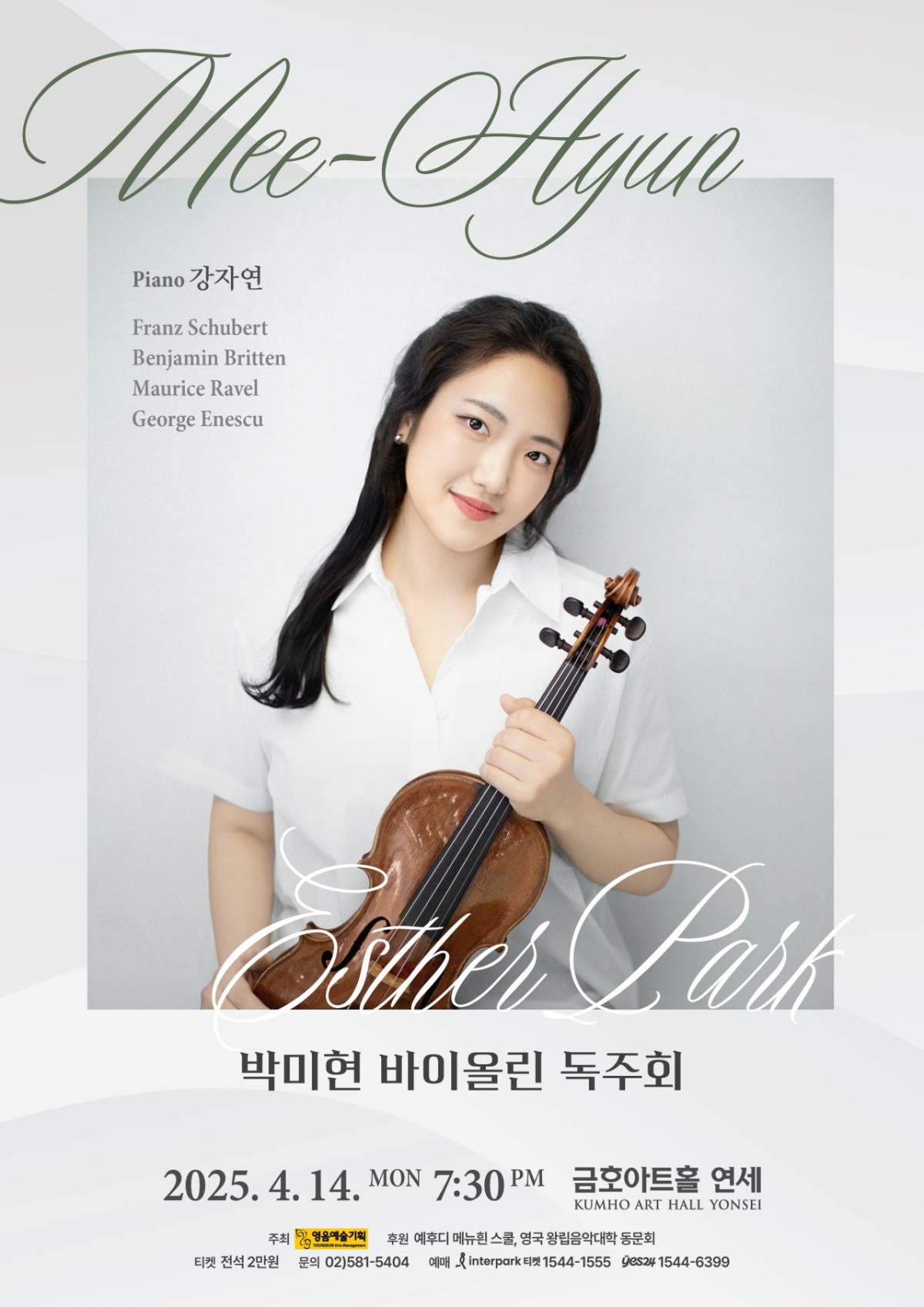 독창적인 음악적 해석력과 정교한 기교로 세계 무대에서 주목받고 있는 바이올리니스트 박미현이 4월 14일(월) 오후 7시 30분, 금호아트홀 연세에서 특별한 리사이틀을 선보인다.
