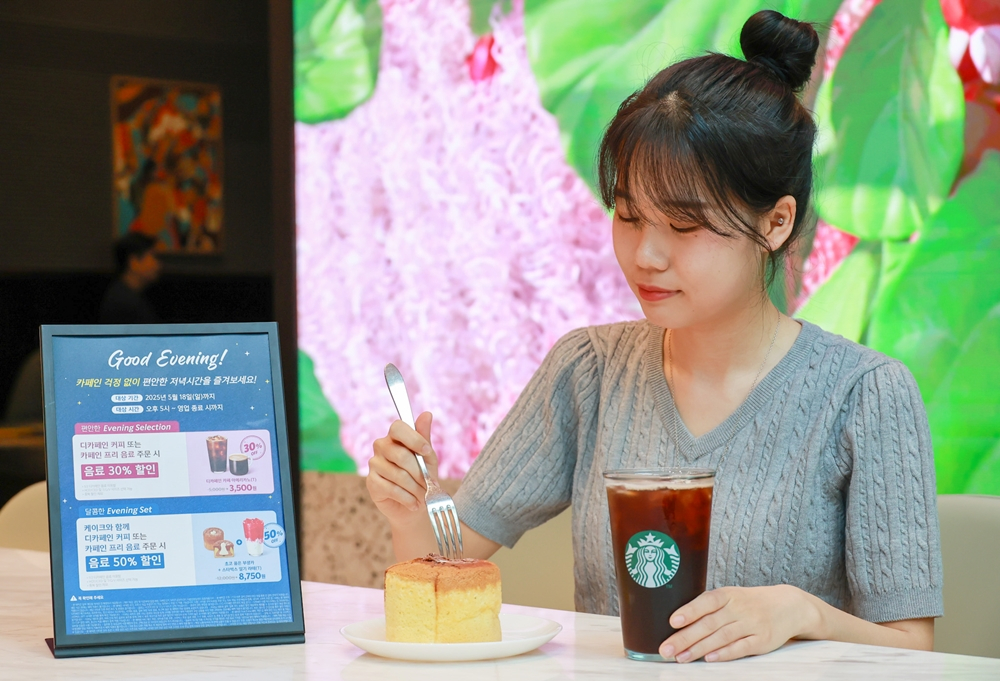 스타벅스 코리아(대표이사 손정현)가 4월 23일부터 5월 18일까지 약 한 달간 매일 오후 5시 이후 이벤트 대상 디카페인 커피 또는 카페인 프리 음료를 주문하는 고객에게 음료를 최대 50% 할인해주는 '이브닝 이벤트'를 진행한다.