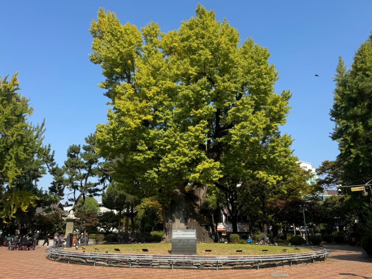 청주 압각수는 수령 900년으로 추정되는 높이 20.5m의 은행나무다. 잎 모양이 오리의 발(압각)을 닮아 붙여진 이름이다.