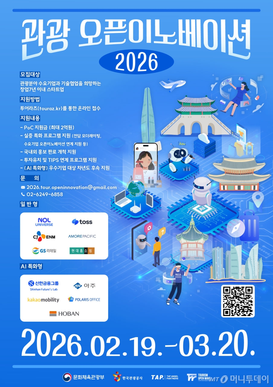 '2026 관광 오픈 이노베이션 사업 공모'는 혁신 기술을 보유한 스타트업과 대·중견기업의 협업을 돕는 사업이다. 대·중견기업의 관광 분야 사업 확장 수요와 스타트업의 아이디어를 결합해 관광산업의 혁신을 이끌기 위해 마련됐다.
