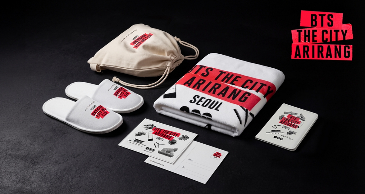 우선 방탄소년단 컴백을 기념한 한정판 굿즈 5종을 제작했다. 여권 케이스, 배스 타월, 더스트백, 객실 슬리퍼, 웰컴 카드로 구성되며, 파라다이스시티 호텔과 아트파라디소 객실 패키지 이용 고객에게 제공된다. 호텔 패키지 이용객에게는 리조트 내에서 사용할 수 있는 4만 원 상당의 리조트머니와 라운지 파라다이스의 '블랙 버거', '레드 하이볼'이 포함된다. 아트파라디소 이용객은 방탄소년단 테마 웰컴 드링크와 조식을 즐길 수 있다.