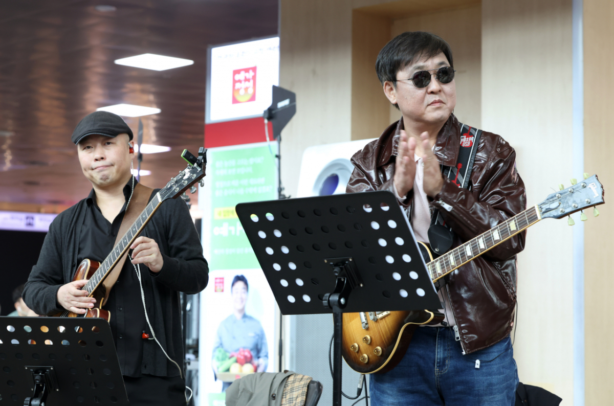 검은색 선글라스를 쓴 최휘영 문체부 장관은 직접 기타를 메고 밴드와 함께 무대에 올랐다. 최 장관은 서울역 한복판에 마련된 무대에서 기타를 연주하며 20여분간 재즈와 국악이 어우러지는 공연을 펼쳤다. 무대가 끝난 후에는 밴드와 함께 공연을 관람한 시민들에게 인사했다.