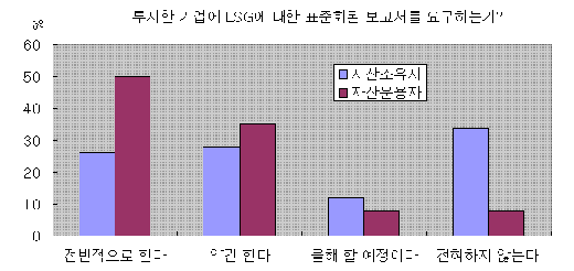 기업에 ESG 관련 표준화된 보고서를 요구하는 비율 역시 자산운용사(85%)가 자산보유기관(54%)보다 높았다.