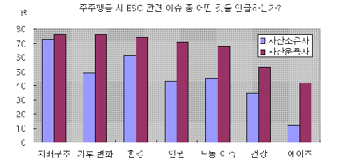 조사에 응한 44개 자산운용사 중 83%는 기업의 환경ㆍ사회ㆍ지배구조(ESG) 이슈 즉 비재무적 가치에 대한 투자 정책을 가지고 있었다. 5%는 '올해 중 만들 계획'이라고 밝혔다.