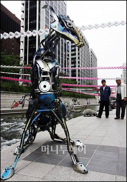 28일 오후 서울 청계천 복원 2주년을 기념하기 위해서 열린 '2007 청계천 축제' 정크아트(Junk Art) 특별전이 모전교와 광교구간에서 열린다. 청계천 복원 2주년을 기념해 열리는 정크아트 특별전은 예술가 오대호씨의 작품 중 30여점이 전시될 예정이다. 폐품과 쓰레기를 활용해 만드는 정크아트(Junk Art)는 현대 도시문명의 폐해를 비판하는 한편. 자원보전을 통한 환경의 중요성을 강조하는데 의미를 두고 있다. 독자들의 PICK! 홍서범 전 며느리 "아들 외도, 대중에 사과? 저에게 하시라" 분노 월 700만원 벌어도..."생활비 30만원, 한국인 남편 짠돌이" 화사, 속옷이 다 보여...과감한 드레스 연출에 '깜짝' 이하이 "도끼, 하나뿐인 내 남자" 열애 인정…"두 사람 지금 미국에"