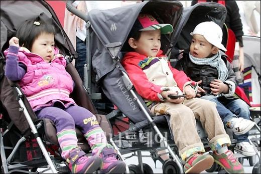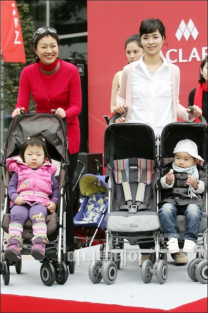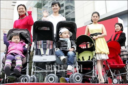 영국 명품유모차 맥클라렌이 2008년형 유모차 신모델 출시를 기념하여 25일 오전 서울 소공동 롯데백화점 본점 야외무대에서 업계 최초의 유모차 패션쇼 '2008